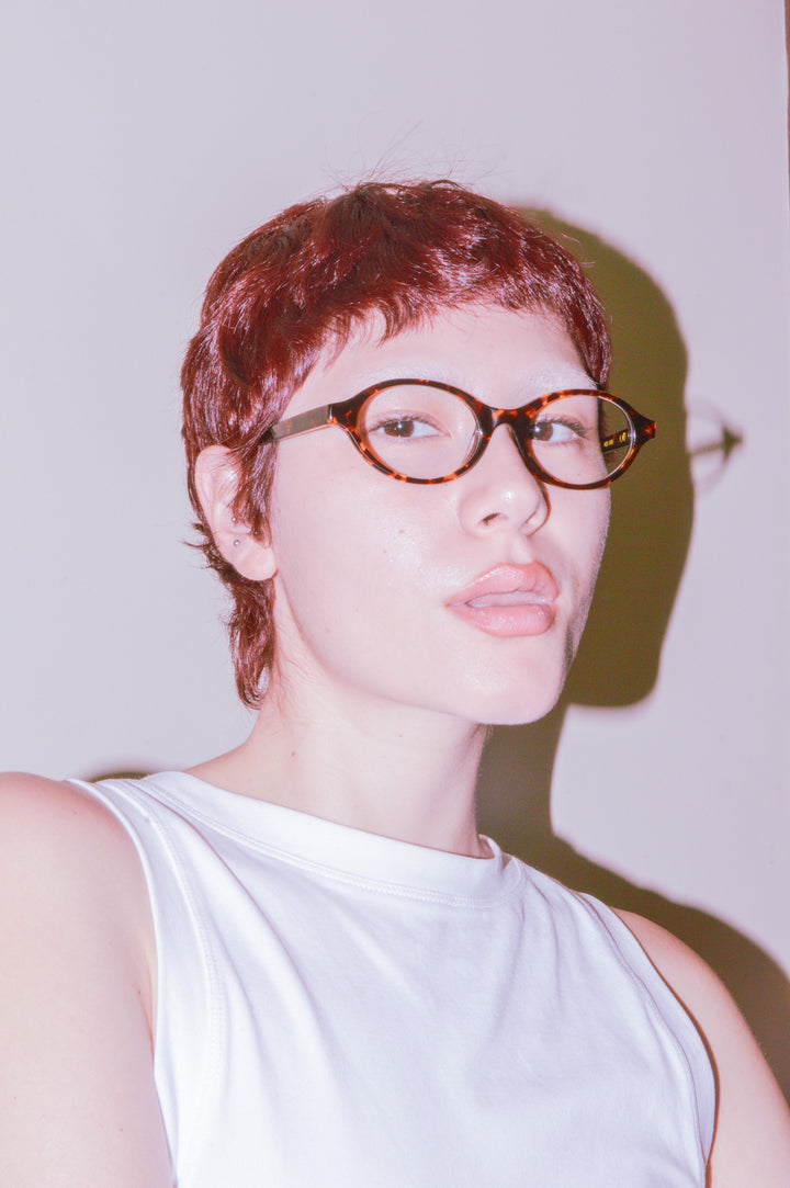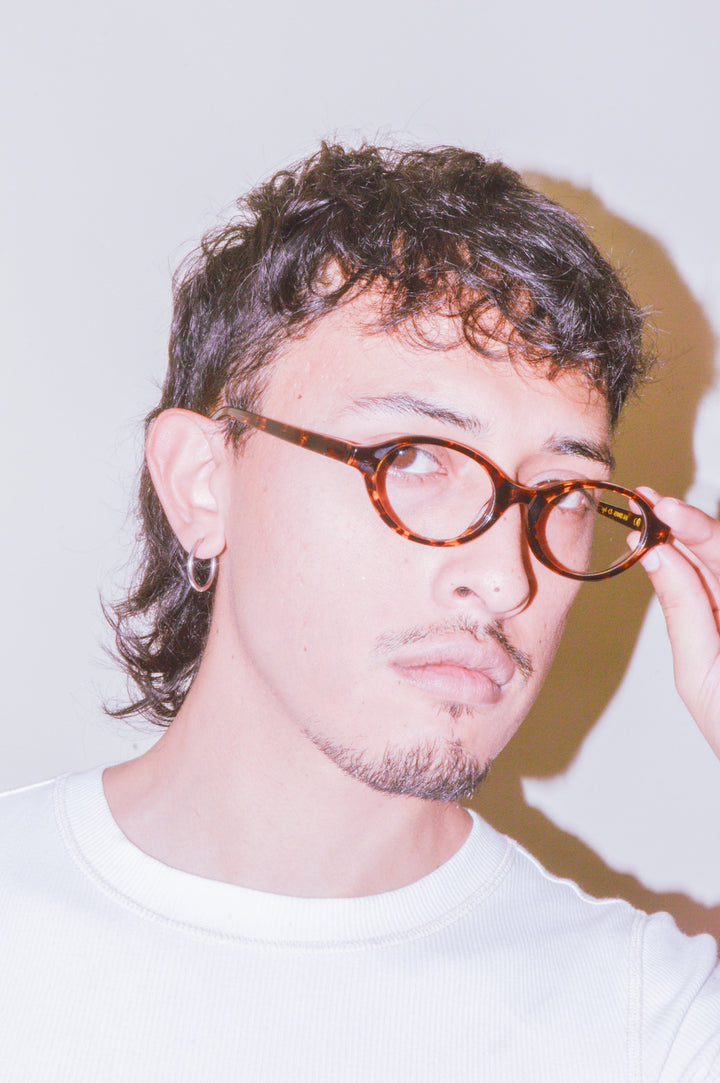 Estaba usando nuestra montura f i f t y 6, hecha a mano en acetato italiano.
